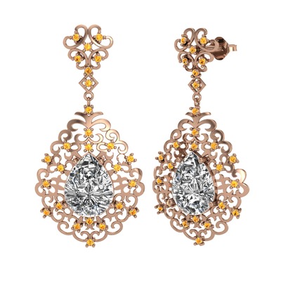 Swarovski ve sitrin 8 ayar rose altın küpe