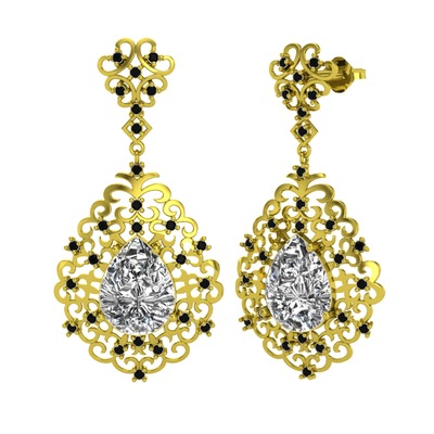 Swarovski ve siyah zirkon 14 ayar altın küpe