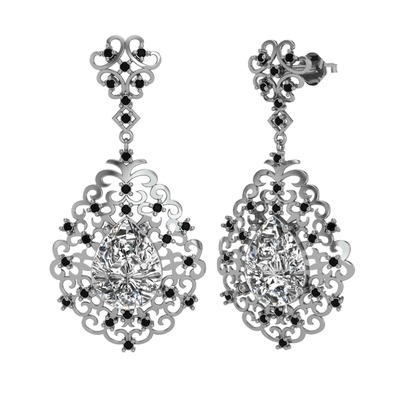 Swarovski ve siyah zirkon 14 ayar beyaz altın küpe