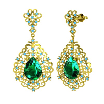 Yeşil kuvars ve akuamarin 18 ayar altın küpe