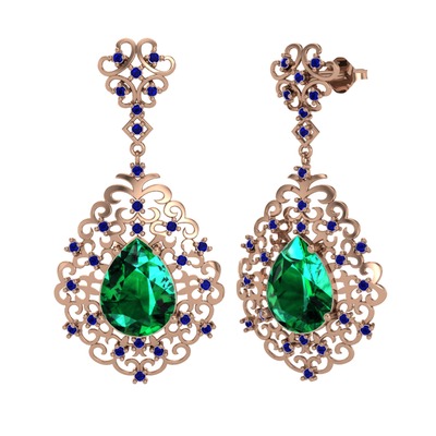Yeşil kuvars ve lab safir 8 ayar rose altın küpe