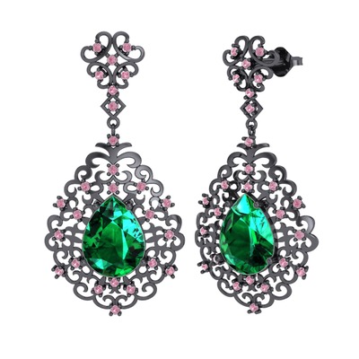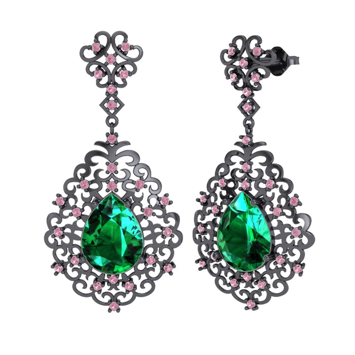 Yeşil kuvars ve pembe kuvars 925 ayar siyah rodyum kaplama gümüş küpe