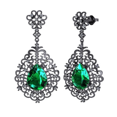 Yeşil kuvars ve pırlanta 925 ayar siyah rodyum kaplama gümüş küpe (1.04 karat)