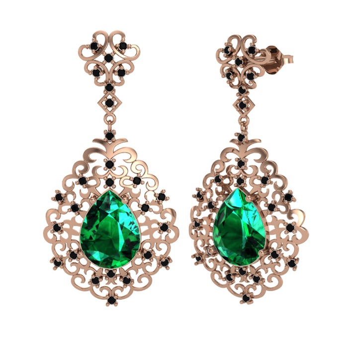 Yeşil kuvars ve siyah zirkon 18 ayar rose altın küpe