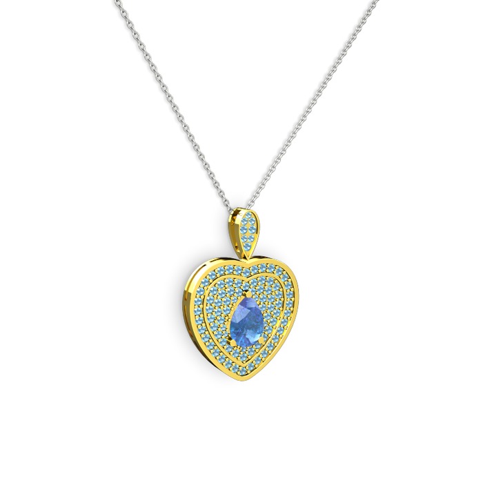 Akuamarin 14 ayar altın kolye (40 cm beyaz altın rolo zincir)