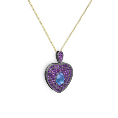 Akuamarin ve ametist 925 ayar siyah rodyum kaplama gümüş kolye (40 cm altın rolo zincir)