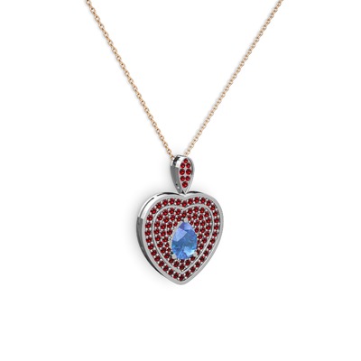 Akuamarin ve garnet 8 ayar beyaz altın kolye (40 cm rose altın rolo zincir)