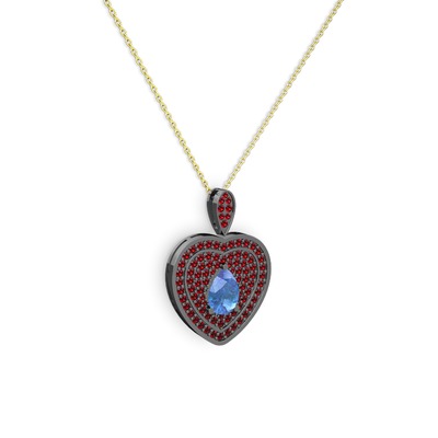 Akuamarin ve garnet 925 ayar siyah rodyum kaplama gümüş kolye (40 cm altın rolo zincir)
