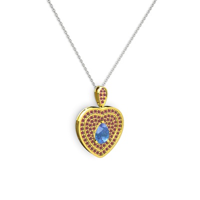 Akuamarin ve kök yakut 18 ayar altın kolye (40 cm beyaz altın rolo zincir)