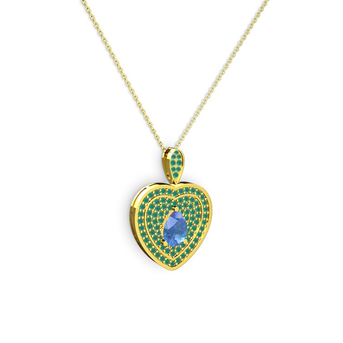 Akuamarin ve kök zümrüt 14 ayar altın kolye (40 cm gümüş rolo zincir)