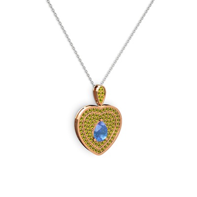 Akuamarin ve peridot 14 ayar rose altın kolye (40 cm gümüş rolo zincir)