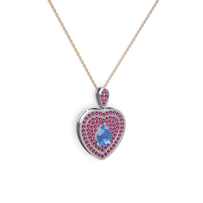 Akuamarin ve rodolit garnet 8 ayar beyaz altın kolye (40 cm rose altın rolo zincir)