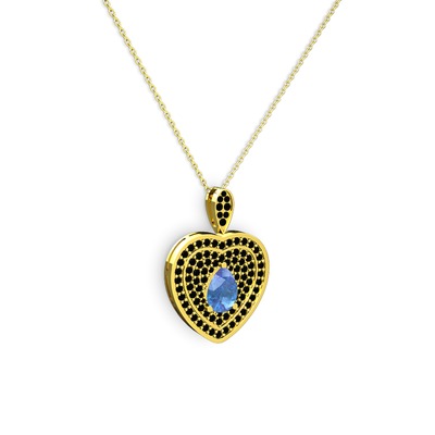 Akuamarin ve siyah zirkon 18 ayar altın kolye (40 cm altın rolo zincir)