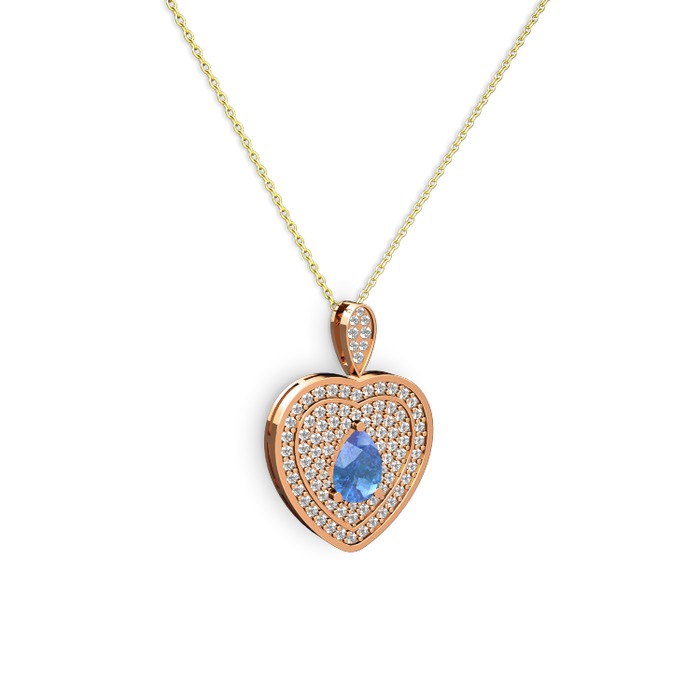 Akuamarin ve swarovski 925 ayar rose altın kaplama gümüş kolye (40 cm gümüş rolo zincir)