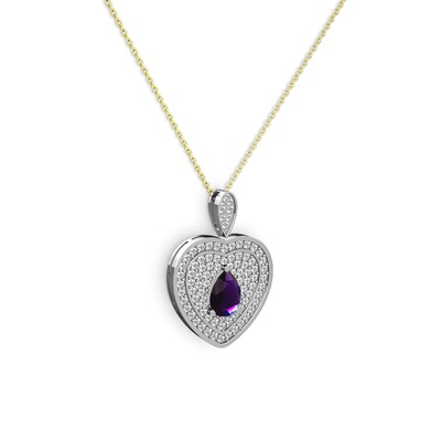 Ametist ve beyaz zirkon 14 ayar beyaz altın kolye (40 cm gümüş rolo zincir)