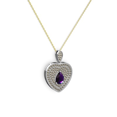 Ametist ve dumanlı kuvars 925 ayar gümüş kolye (40 cm altın rolo zincir)