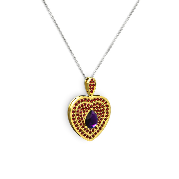 Ametist ve garnet 14 ayar altın kolye (40 cm gümüş rolo zincir)