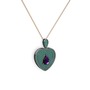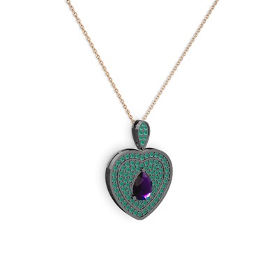 Ametist ve kök zümrüt 925 ayar siyah rodyum kaplama gümüş kolye (40 cm rose altın rolo zincir)
