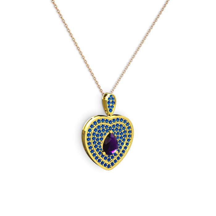Ametist ve lab safir 8 ayar altın kolye (40 cm rose altın rolo zincir)
