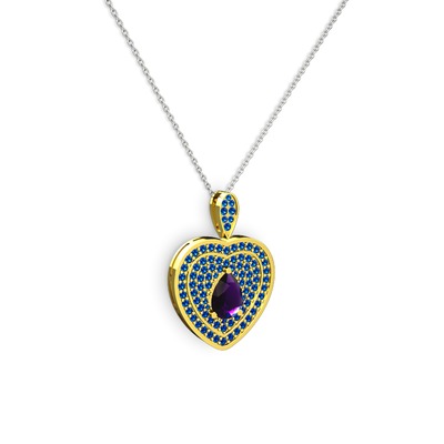 Ametist ve lab safir 925 ayar altın kaplama gümüş kolye (40 cm beyaz altın rolo zincir)