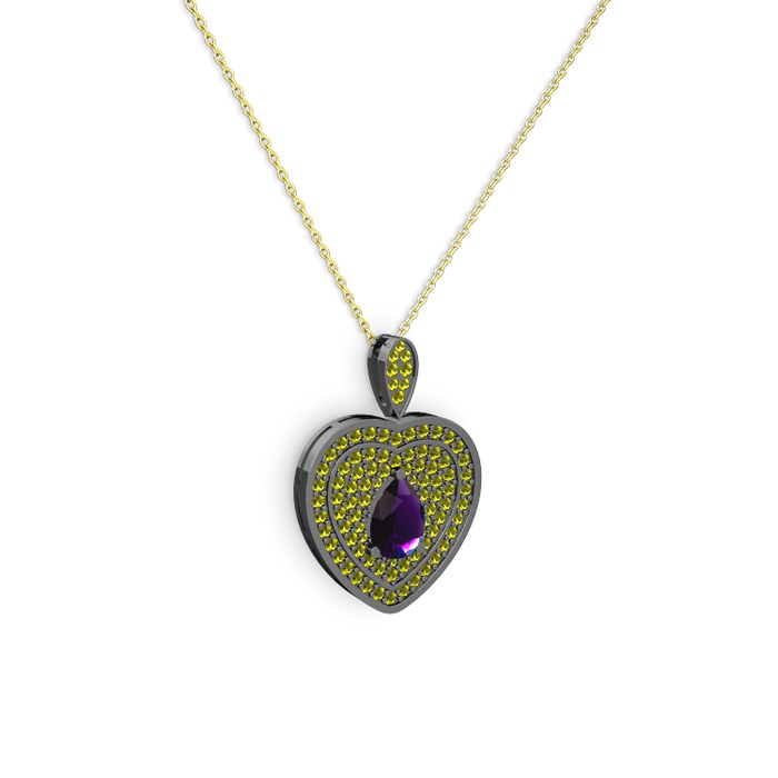 Ametist ve peridot 925 ayar siyah rodyum kaplama gümüş kolye (40 cm altın rolo zincir)