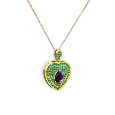 Ametist ve yeşil kuvars 14 ayar altın kolye (40 cm rose altın rolo zincir)