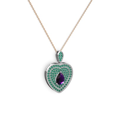 Ametist ve yeşil kuvars 925 ayar gümüş kolye (40 cm rose altın rolo zincir)