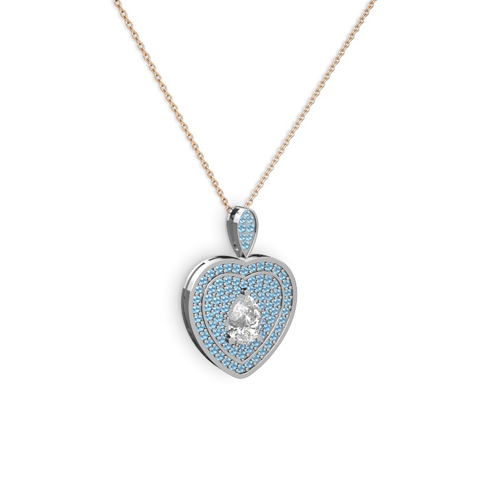 Beyaz zirkon ve akuamarin 14 ayar beyaz altın kolye (40 cm gümüş rolo zincir)