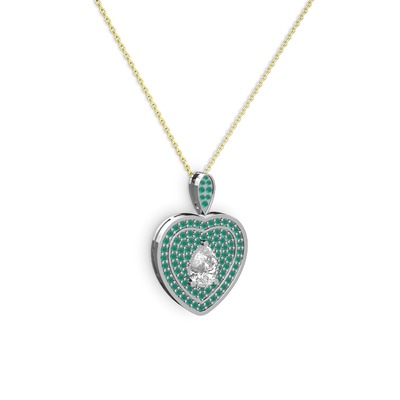 Beyaz zirkon ve kök zümrüt 925 ayar gümüş kolye (40 cm altın rolo zincir)