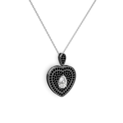 Beyaz zirkon ve siyah zirkon 925 ayar siyah rodyum kaplama gümüş kolye (40 cm beyaz altın rolo zincir)