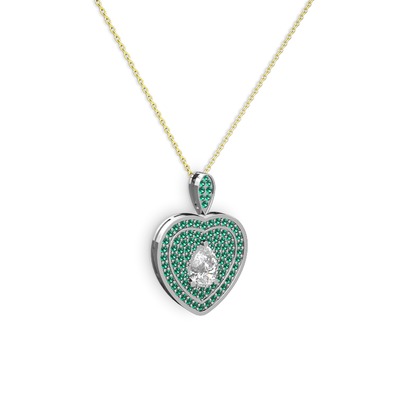 Beyaz zirkon ve yeşil kuvars 18 ayar beyaz altın kolye (40 cm gümüş rolo zincir)