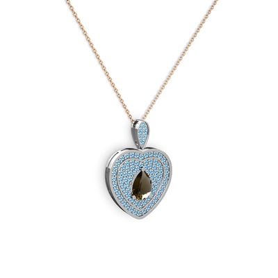 Dumanlı kuvars ve akuamarin 14 ayar beyaz altın kolye (40 cm gümüş rolo zincir)
