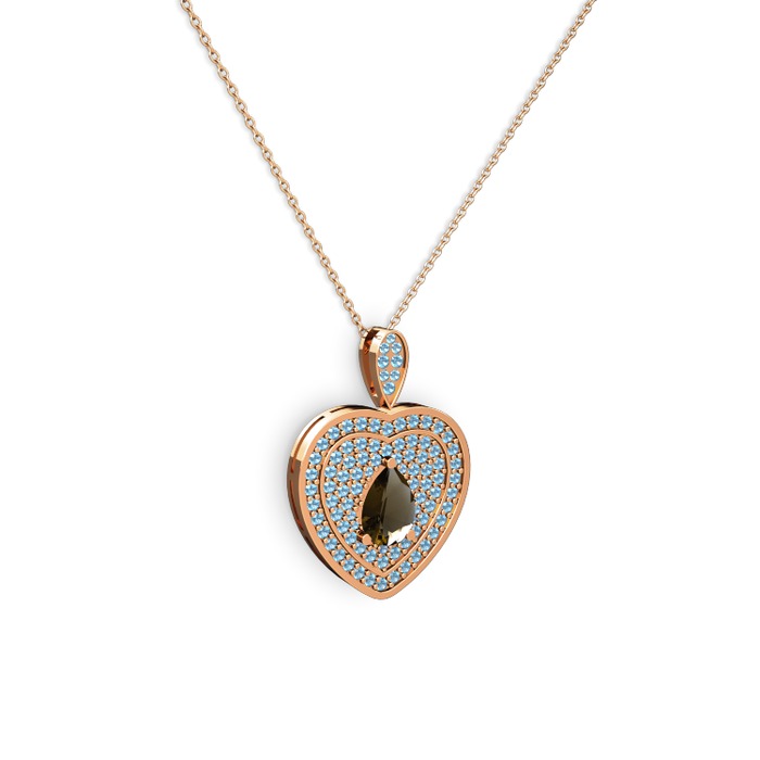 Dumanlı kuvars ve akuamarin 925 ayar rose altın kaplama gümüş kolye (40 cm rose altın rolo zincir)