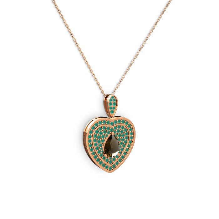 Dumanlı kuvars ve kök zümrüt 925 ayar rose altın kaplama gümüş kolye (40 cm gümüş rolo zincir)