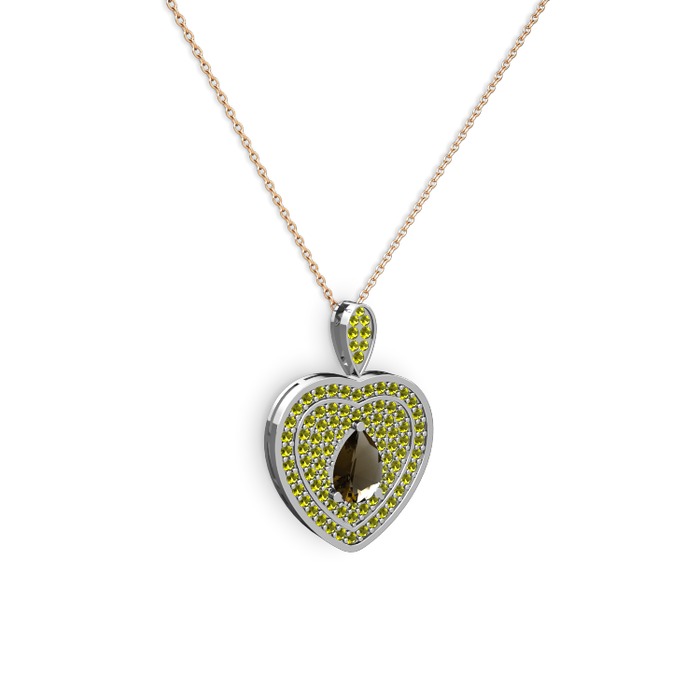 Dumanlı kuvars ve peridot 8 ayar beyaz altın kolye (40 cm rose altın rolo zincir)