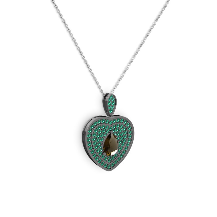 Dumanlı kuvars ve yeşil kuvars 925 ayar siyah rodyum kaplama gümüş kolye (40 cm beyaz altın rolo zincir)
