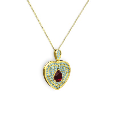 Garnet ve akuamarin 18 ayar altın kolye (40 cm altın rolo zincir)