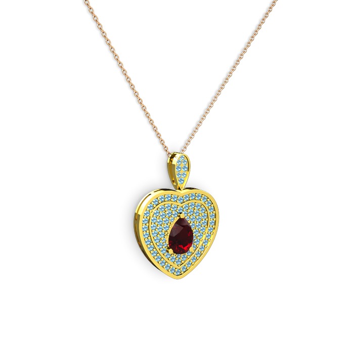 Garnet ve akuamarin 8 ayar altın kolye (40 cm rose altın rolo zincir)