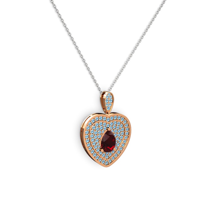 Garnet ve akuamarin 8 ayar rose altın kolye (40 cm gümüş rolo zincir)