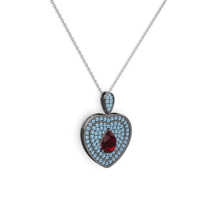 Garnet ve akuamarin 925 ayar siyah rodyum kaplama gümüş kolye (40 cm beyaz altın rolo zincir)