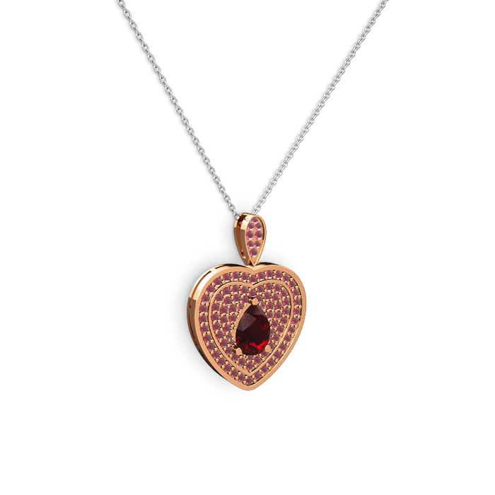 Garnet ve kök yakut 14 ayar rose altın kolye (40 cm beyaz altın rolo zincir)