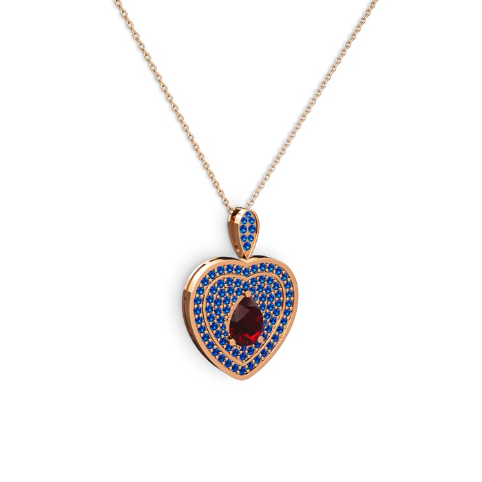 Garnet ve lab safir 18 ayar rose altın kolye (40 cm gümüş rolo zincir)