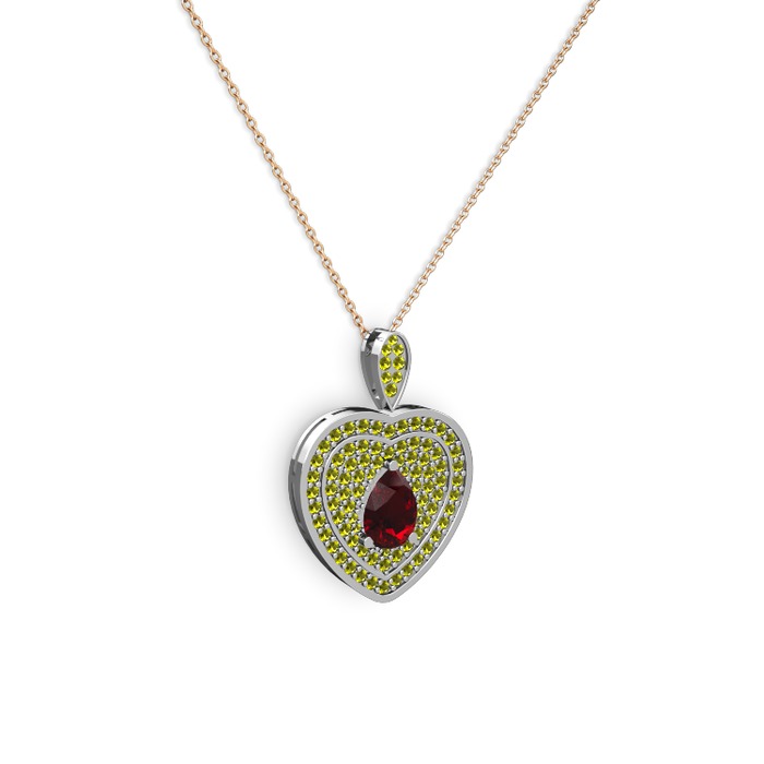 Garnet ve peridot 14 ayar beyaz altın kolye (40 cm gümüş rolo zincir)