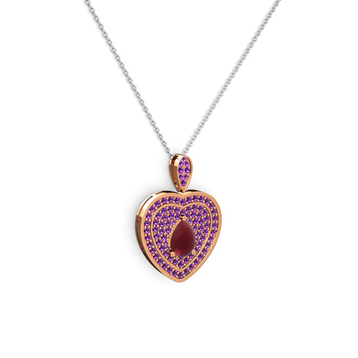 Kök yakut ve ametist 8 ayar rose altın kolye (40 cm beyaz altın rolo zincir)