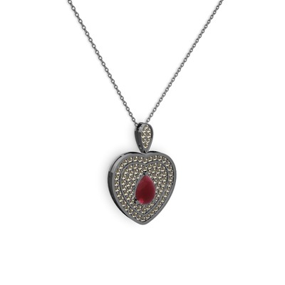 Kök yakut ve dumanlı kuvars 925 ayar siyah rodyum kaplama gümüş kolye (40 cm gümüş rolo zincir)