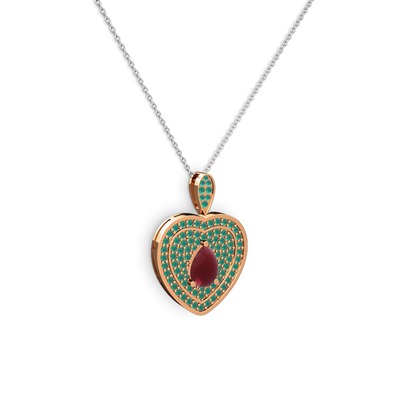 Kök yakut ve kök zümrüt 925 ayar rose altın kaplama gümüş kolye (40 cm beyaz altın rolo zincir)