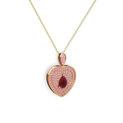 Kök yakut ve pembe kuvars 18 ayar rose altın kolye (40 cm gümüş rolo zincir)
