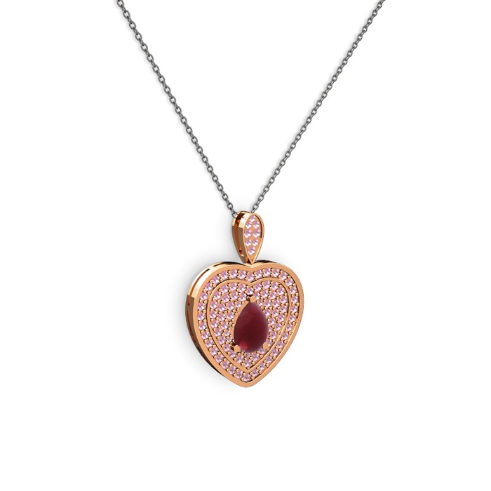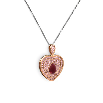 Kök yakut ve pembe kuvars 8 ayar rose altın kolye (40 cm gümüş rolo zincir)