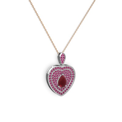 Kök yakut ve rodolit garnet 14 ayar beyaz altın kolye (40 cm gümüş rolo zincir)