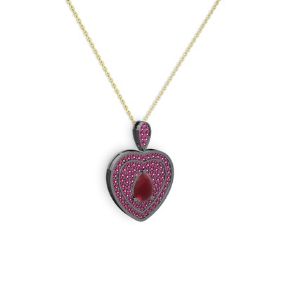 Kök yakut ve rodolit garnet 925 ayar siyah rodyum kaplama gümüş kolye (40 cm altın rolo zincir)